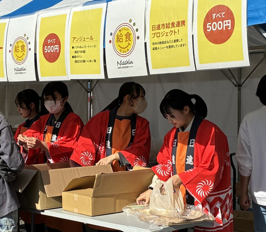 「にっしん市民まつり」の「にっしん給食横丁」で栄養教諭教職課程学生がお手伝いをしました。